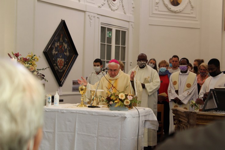 Finalement, dimanche dernier, nous nous sommes retrouvés tous ensemble pour une messe solennelle présidée par Monseigneur Hudsyn. La journée n’aurait pas pu être complète sans le partage d’un bon repas. Nous nous sommes donc retrouvés à la Ferme de l’Herbe dans un esprit très convivial.