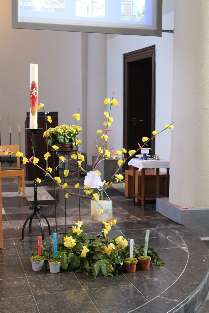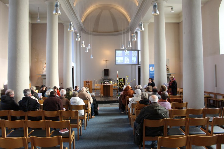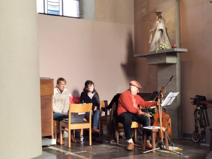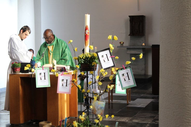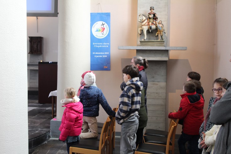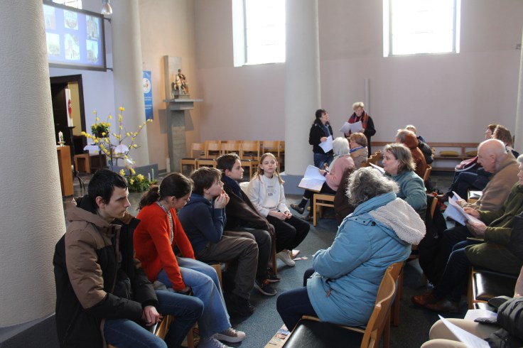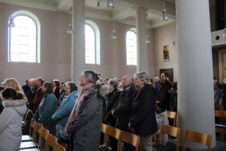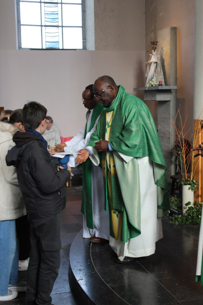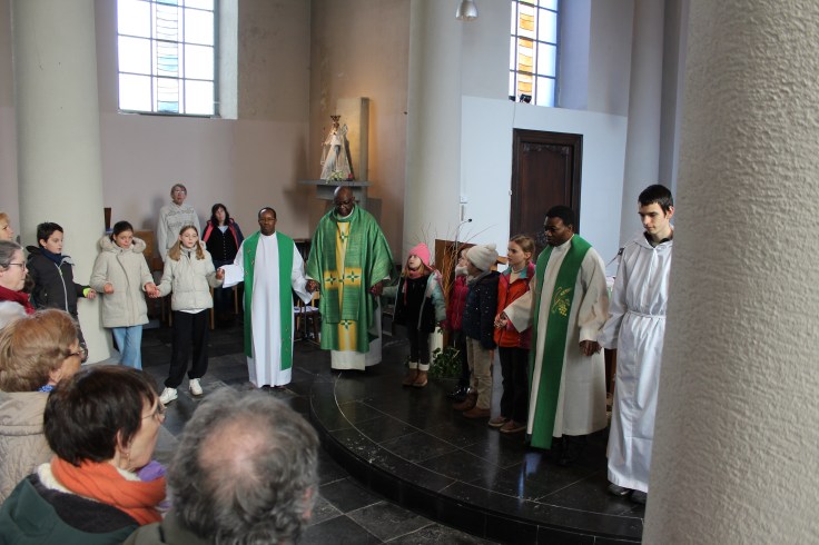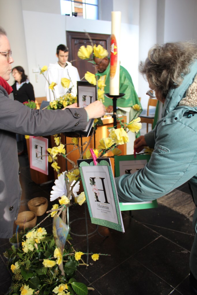 Nous nous sommes donc réunis pour écouter ensemble le texte des Béatitudes. Tous les enfants du catéchisme de nos cinq paroisses étaient réunis. C’est eux qui ont apporté les lettres de vœux que chaque paroisse avait écrites.